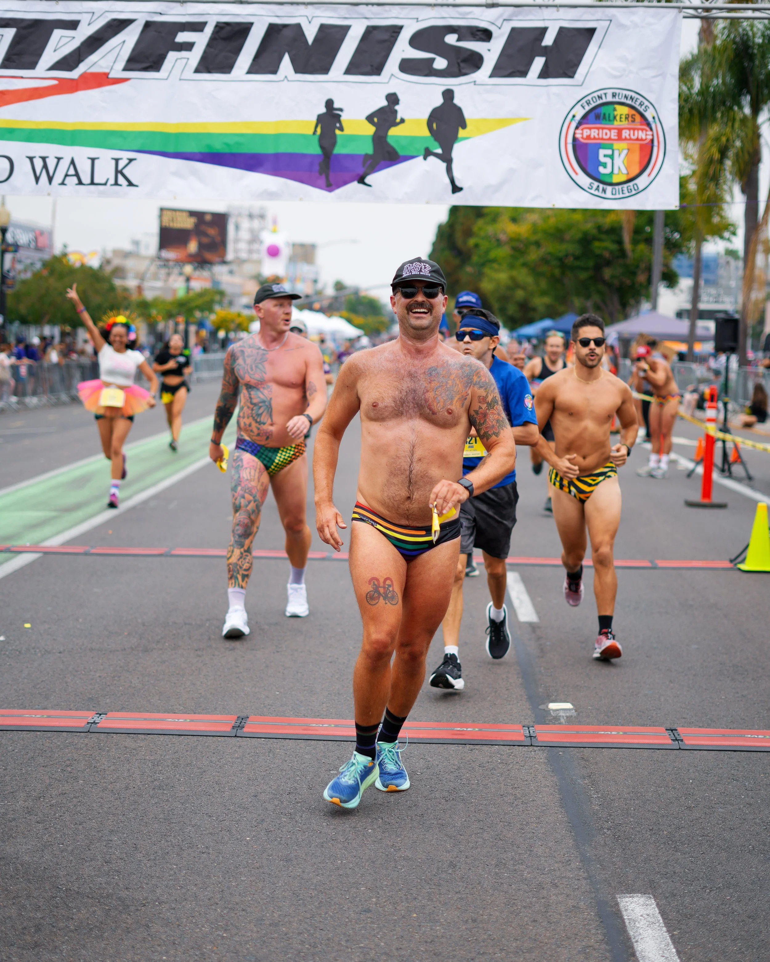 But this event was more than a race. This race marked a culmination of a 7-year journey, from the first Bagz I bought to that very moment, and the many workouts and races I had done to gain the strength and confidence to run San Diego’s streets in nothing more than a swim brief.